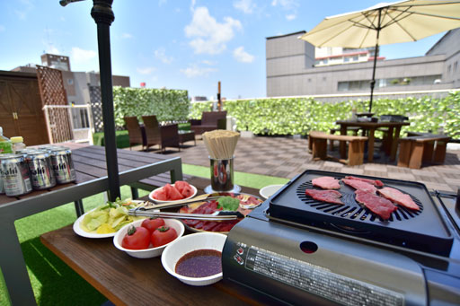 地下鉄西長堀駅から徒歩2分。リゾート感あふれるテラスと広々としたグランピングを楽しめる、美しくゾーニングされた屋上公園。周囲の建物に囲まれた隠れ家的リゾート空間で最高級熟成黒毛和牛が味わえる、プライベート感抜群のアップグレードなBBQをお楽しみください。サプライズを与える空間に、一緒に来られた仲間もきっと満足するでしょう。